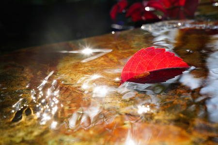 水面上的红色枫叶图片 自然风景 高清素材 图行天下素材网